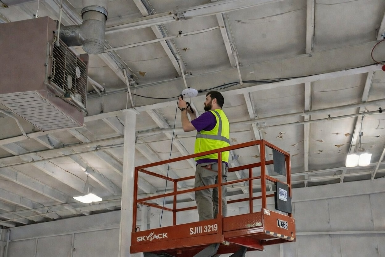 Proper equipment placement improves coverage, performance, and accessibility. We evaluate facility layout, machinery interference, ceiling heights, and operational workflows to position equipment for maximum efficiency and reliability.